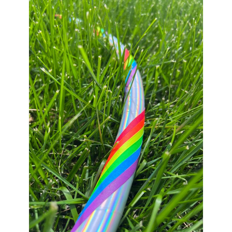 We are so excited to bring you this fabulous pride themed fitness hoop made by our lead hoop elf, Christina (they, her). Celebrating pride month is important to us, and it goes further than just a special hoop. Many of our team members celebrate their own belonging within the LGTBQ community, and we welcome each and everyone one of you, no matter how you identify. Christina created this hoop because it represents something that she feels like represents her and her truth.