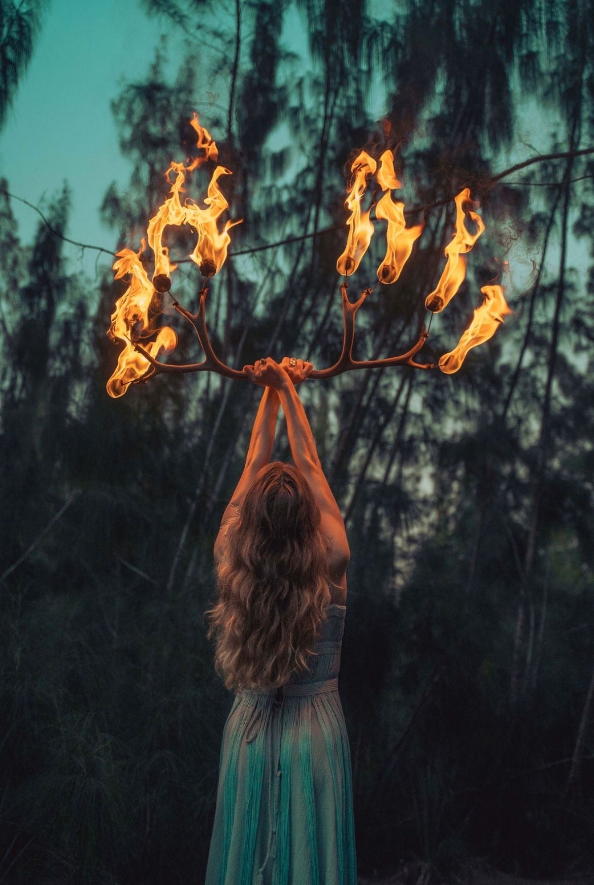 Please practice dancing with your fire antlers before lighting them on fire. Discover ways to maneuver yourΒ antlers in varying speeds. If you have a pair of matching antlers, you should discern which one goes in theΒ right hand and which one goes in the left.
