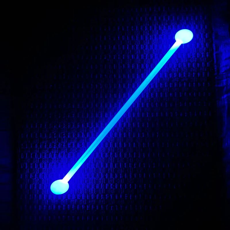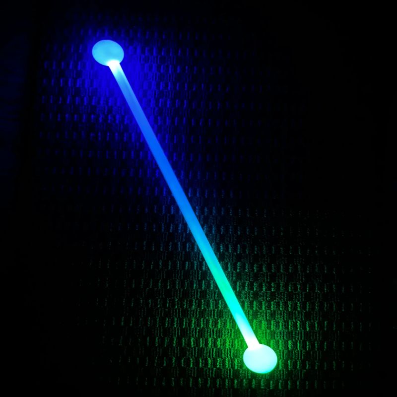 Features two high powered LED lights fully enclosed in a tough milky white polycarbonate sheath which is then fully enclosed in a soft translucent silicone ball. The balls add weight to the end of the glowΒ staff ensuring smooth spinning while simultaneously protecting the enclosed LED Lights ensuring a long life span of both the stick itself and the LED units.