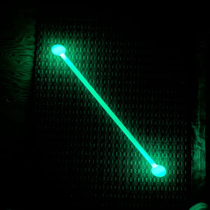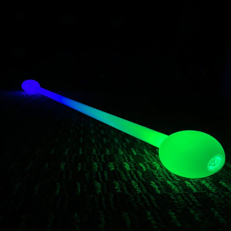 Like the LED Glow staff, this staff is similar but also features a thick fiber-optic core running through the center of the baton which gives the baton a nice consistent glow all the way through the baton. The shaft is constructed from a perfectly translucent super tough plastic that has just enough flex to protect the stick from strong impacts without hindering play.Β