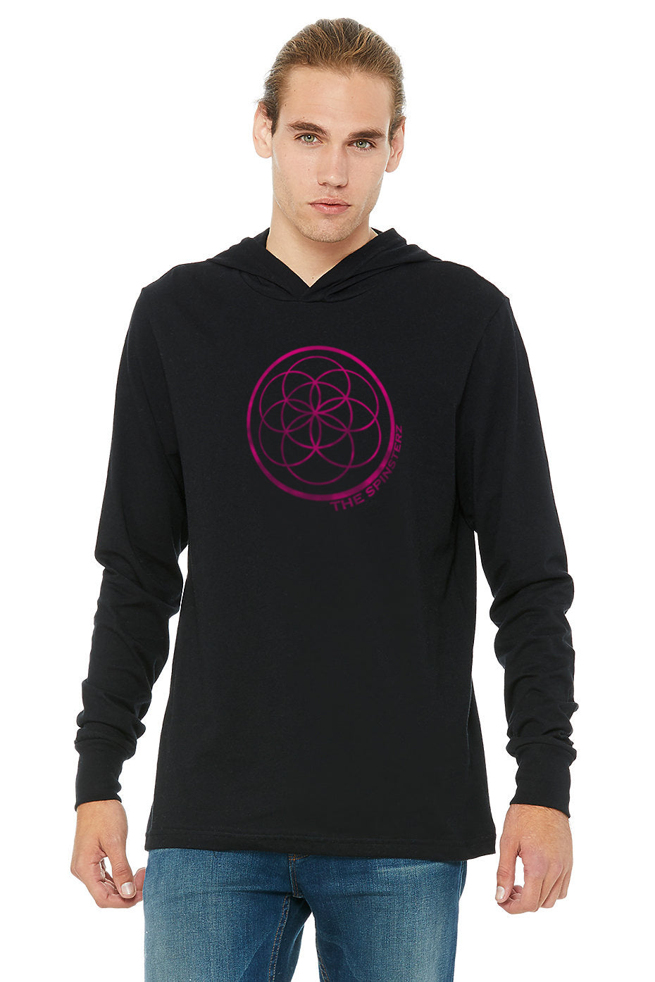 The perfect weight for those slightly chilly summer nights or for year-round layering, this hoodie features the Spinsterz logo in hot pink ink.Β