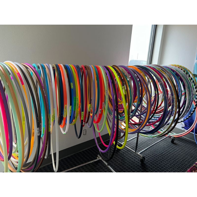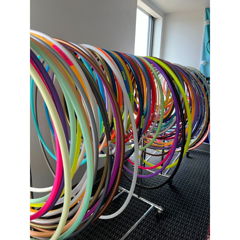 So, for example, option 3432 it is a 3/4" tubing 32" diameter. 5826 would be a 5/8" tubing 26" in diameter. GP3431 would be a single section 3/4" tubing in 31" diameter with grip tape on the entire inside of the hoop. The sectionals are either 3 or 4 section- that's the fun in the mystery :) DISC stands for discounted. For example, DISC5830 is a discounted hooped in 5/8" tubing and size 30" and is discounted because of minor scratches (nothing too noticeable).