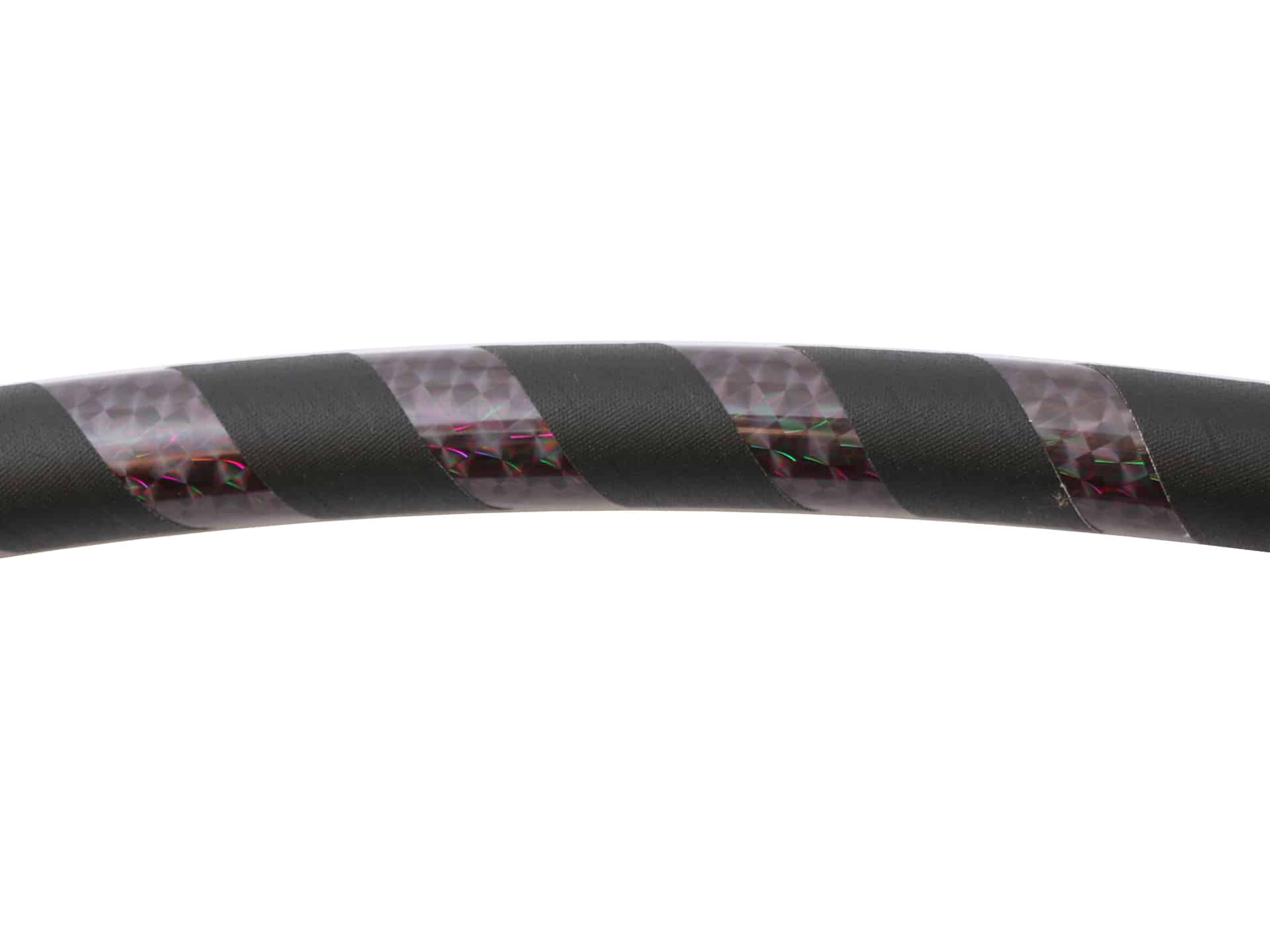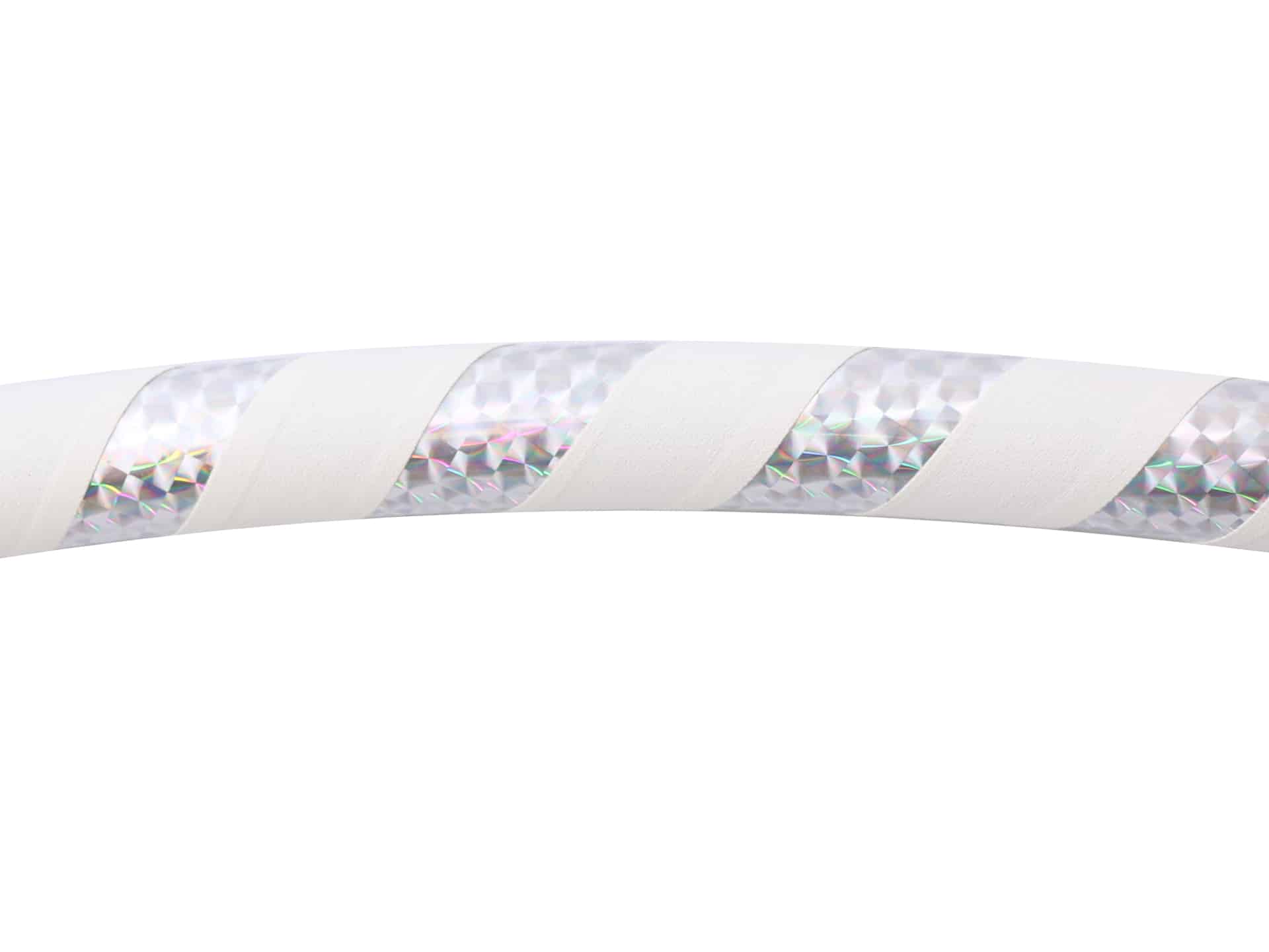 Our Dance and Fitness Hoops are made from a thick, heavier weight plastic material known as Polyethylene and it is best suited for beginners or people that are interested in adding hooping to their lifestyle. Every hoop is made by hand in Boulder, Colorado. Each hoop is taped with both a sparkly holographic metallic tape and then finished off with a grippy cloth tape that adds weight and gives you the maximum amount of grip.