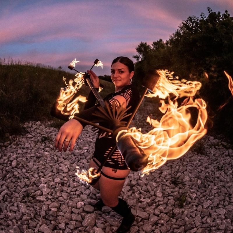 It isΒ requiredΒ to read theΒ Fire Safety InformationΒ prior to making your purchase. It is necessary that all customers understand how to use their prop safely and properly manage the risks involved in fire performance. The Spinsterz will not be held responsible for any damage to any persons including but not limited to death, extreme burns, or any and all injuries.