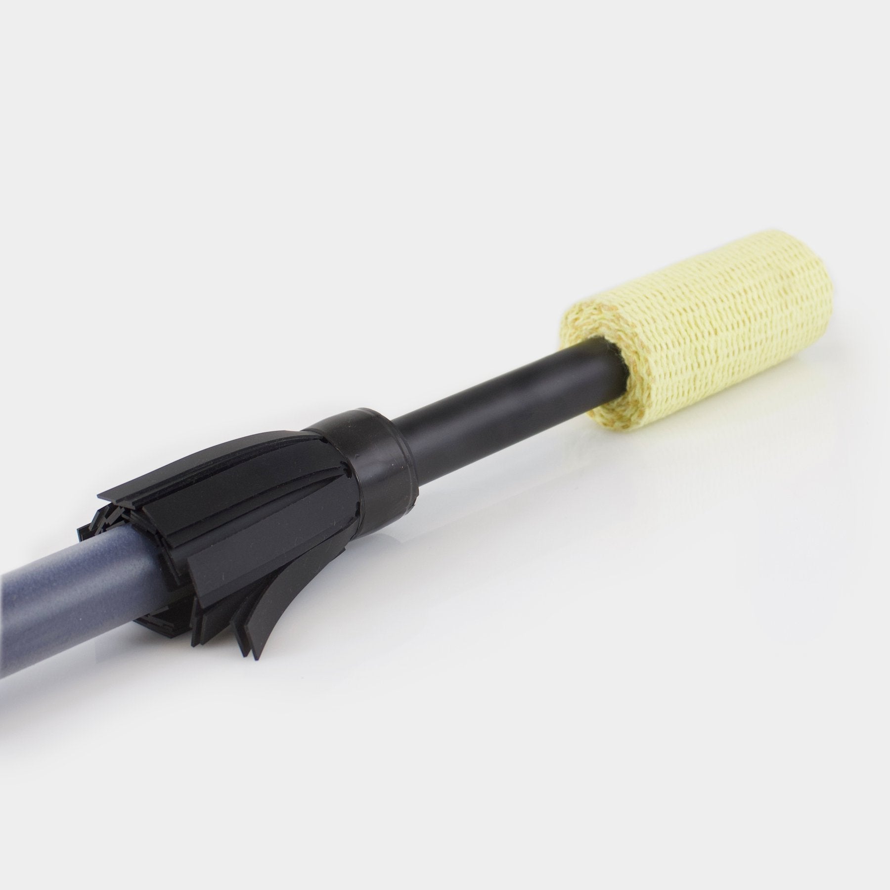 The Fusion Contact Fire Staff is fitted with 100mm Fire resistant Kevlar® wicks to withstand 100's of burns, offering super long-lasting flames. The Kevlar® absorbs the fuel, then once lit the fuel is burnt, leaving the Kevlar® intact.