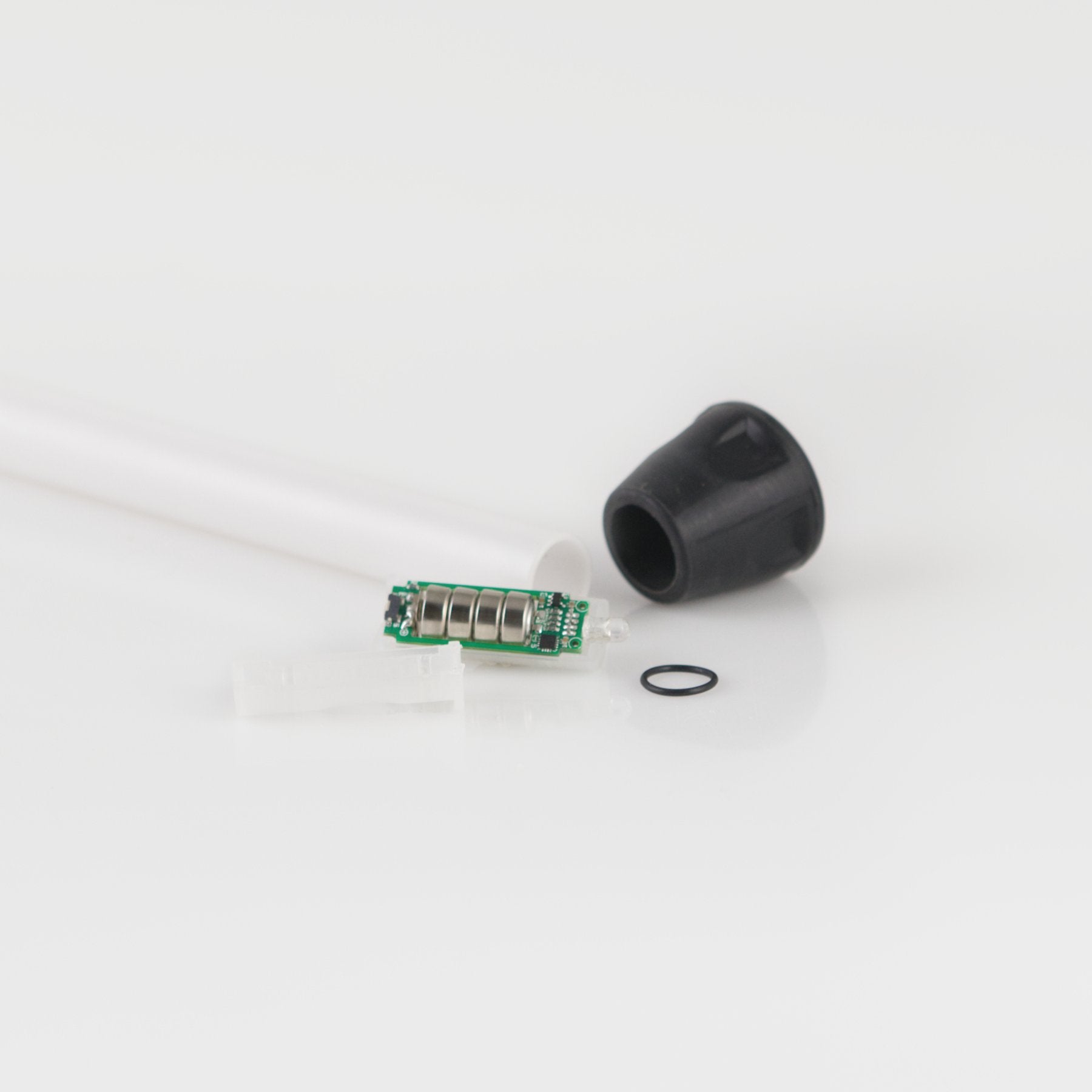 The LED Light Unit is protected within the tubing and covered at the button end by rubber end caps for extra insulation.