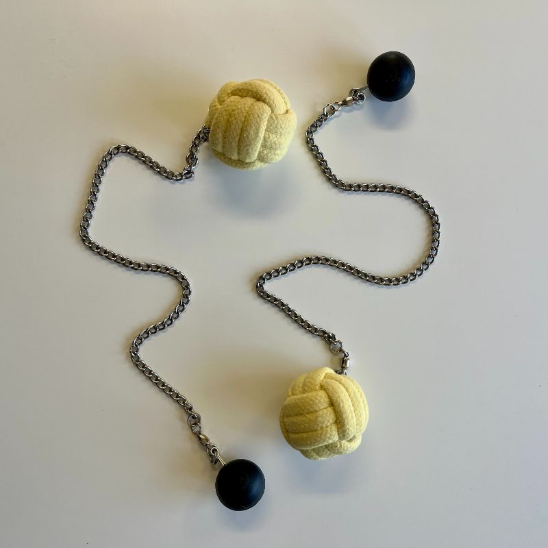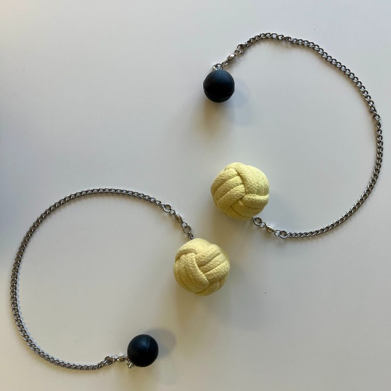 Gora's Monkey Fist Poi are made with chains and rings that have safety in mind. Gora's chains are welded chains, which are considered by far the best quality in the market. Currently, we offer silicone ball handles, which are better for throwing tricks. Silicone ball handles are heavier, softer, more durable, and more fire resistant.
